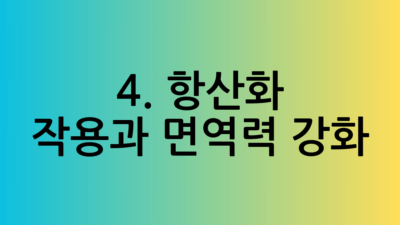 - 주요 효과: 항산화 작용, 면역력 강화, 피부 건강 개선, 염증 완화