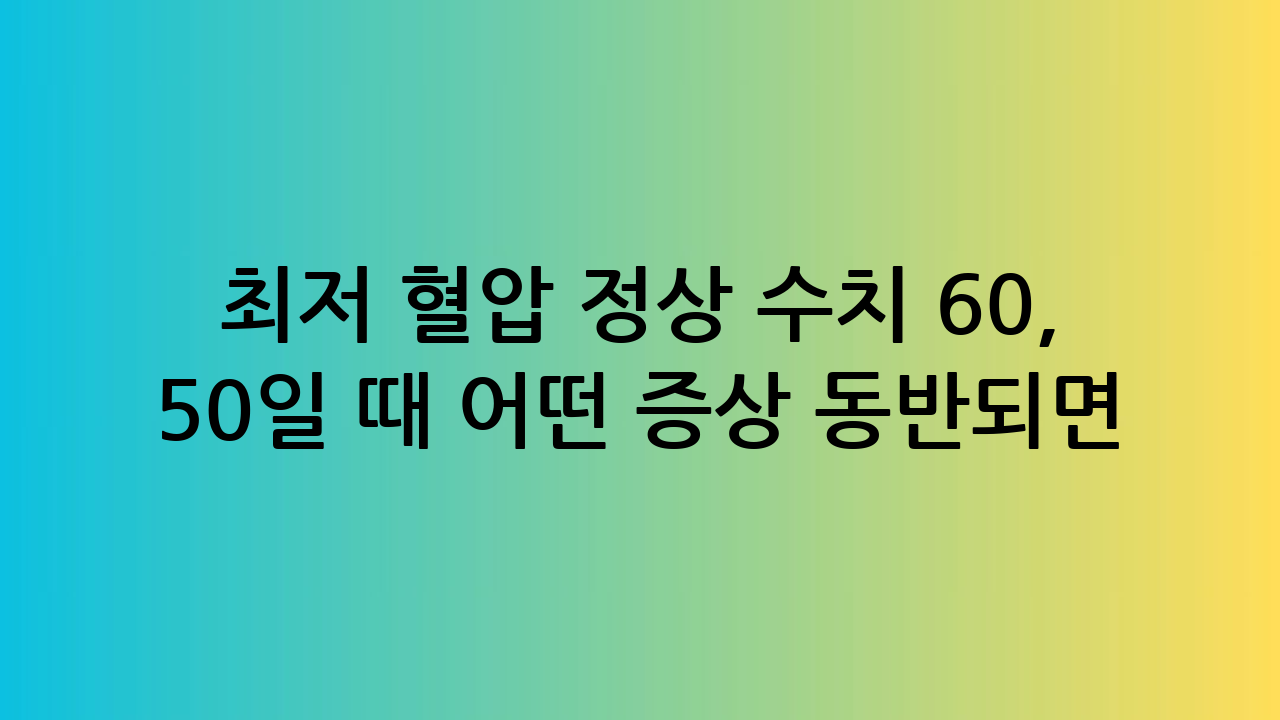 최근 건강에 대한 관심이 높아지면서 혈압 수치에 민감하게 반응하는 사람들이 많습니다. 특히 '최저 혈압', 즉 이완기 혈압이 60mmHg 이하로 내려갈 때 어떤 증상이 동반되는지에 대한 궁금증이 큽니다. 건강검진표에 '혈압 정상'이라고 기재되어 있어도 저혈압 증상이 나타날 수 있으므로 주의해야 합니다. 오늘은 최저 혈압 정상 수치가 60 혹은 50일 때 어떤 증상이 위험 신호인지, 임상에서는 어떻게 접근하는지, 일상에서 어떤 신호를 포착해야 하는지 자세히 알아보겠습니다.